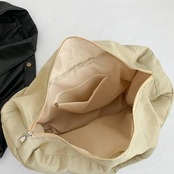 広めのマチとジッパー開閉で中身が見えにくく、さらに内ポケット付きで小物の整理もラクラク。A4サイズもしっかり収まり、通勤や通学、マザーズバッグとしても活躍してくれます。デイリーから旅行まで幅広いシーンで大活躍間違いなしのアイテムです。