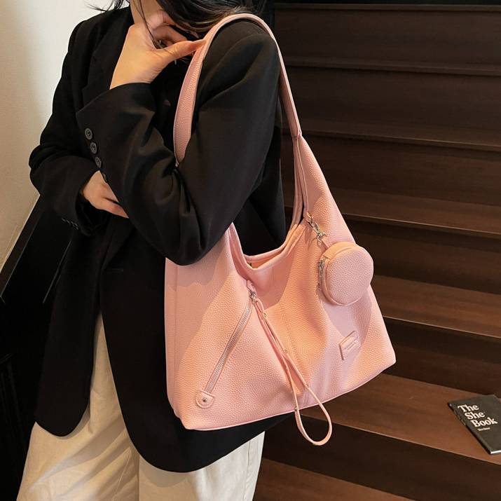 トレンド感溢れる2WAY仕様のショルダーバッグが登場。しなやかで柔らかいPUレザー素材が高見えし、オン・オフ問わず幅広いシーンで活躍します。サイドにはスタイリッシュなジッパー、取り外し可能な丸型ミニポーチ付きで機能性も抜群です。通勤や通学にもぴったりなサイズ感で、シンプルながらこなれ感のある印象に仕上がります。