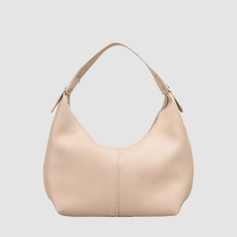 丸みを帯びたシルエットと、しっとりとしたフェイクレザーの質感が魅力のワンショルダーバッグ。高級感のあるデザインでありながら、普段使いにちょうど良いサイズ感と軽さで、デイリーコーデに自然に溶け込みます。ファスナー開閉で防犯面も安心、内ポケット付きで機能性も兼ね備えています。