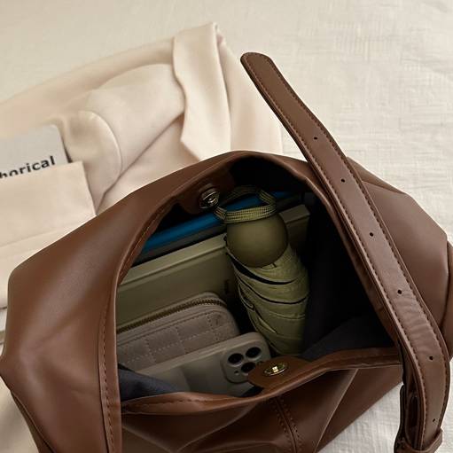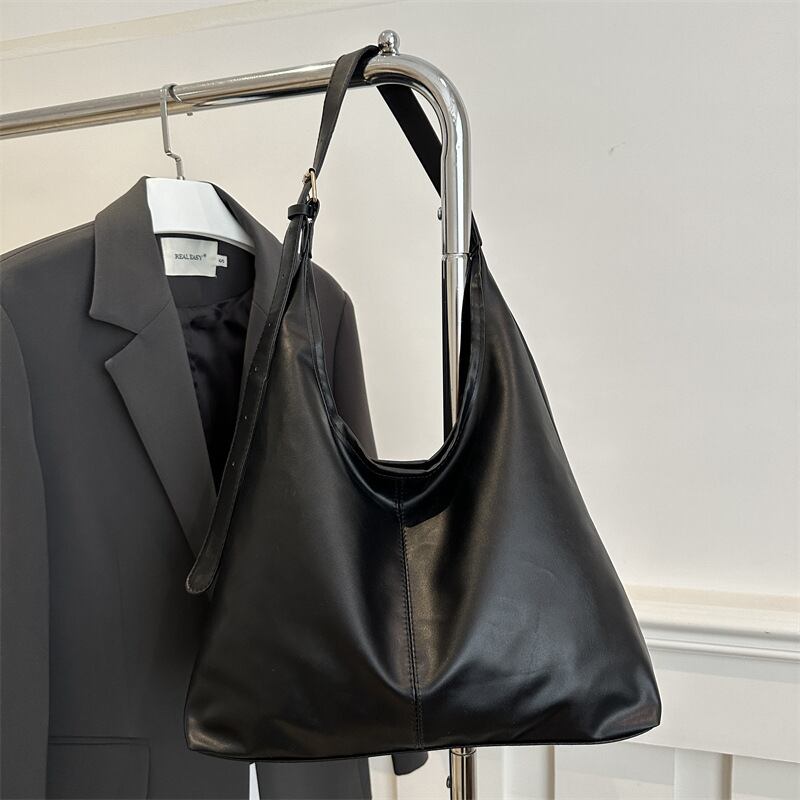 高見えPUレザーとミニマルデザインが魅力の、大容量ワンショルダーバッグ。シンプルながらも曲線的なフォルムが女性らしく、洗練された雰囲気を演出します。しっかり収納力もあるので、通勤・通学・お出かけなど幅広いシーンに対応。