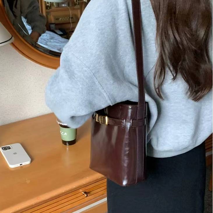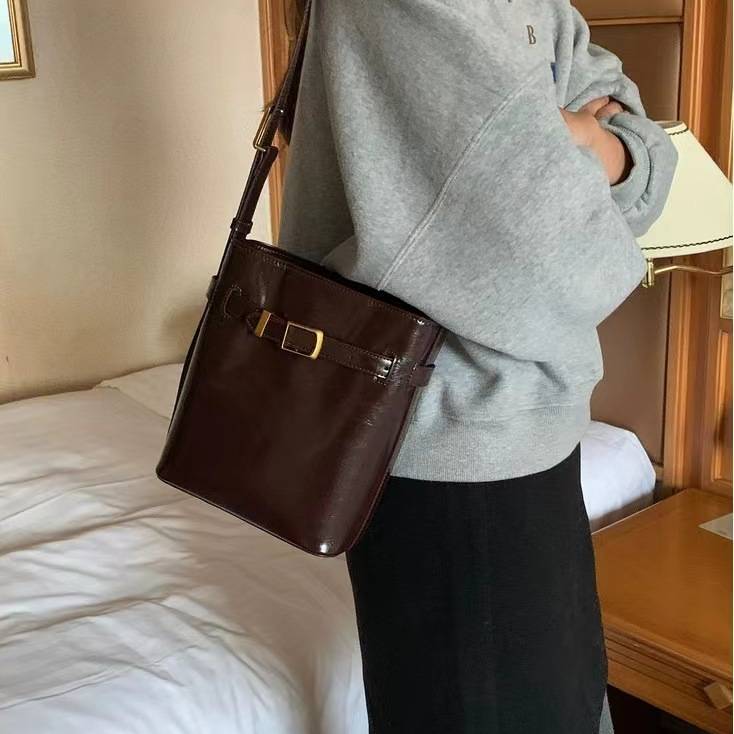 ヴィンテージレザーバッグ バケツ型ショルダーバッグ レディースショルダー バッグ ショルダーバッグ ブラック ブラウン 高級感 韓国風ファッション 大人可愛い 人気アイテム 秋冬 春コーデ K-B0209