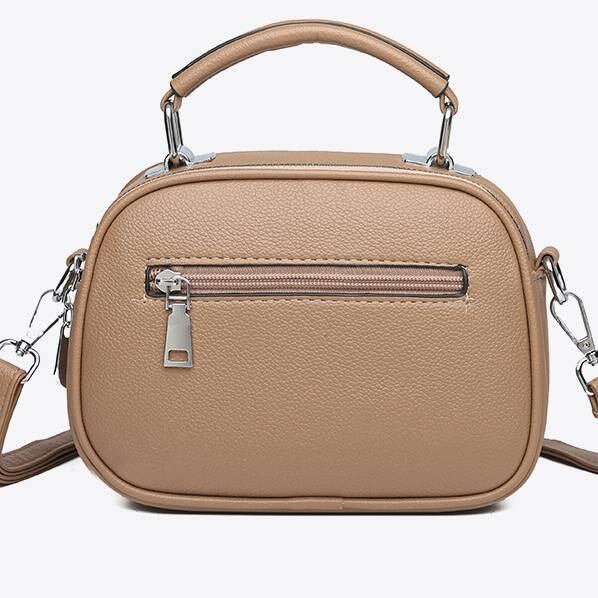上質な合皮素材を使用しており、手触りが柔らかく高見え効果も抜群。前面のダブルジッパーポケットがデザインのアクセントとなっており、見た目以上の収納力と機能性を両立。肩掛けも手持ちもできる2way仕様で、日常使いから旅行、ショッピングまで幅広く活躍します。