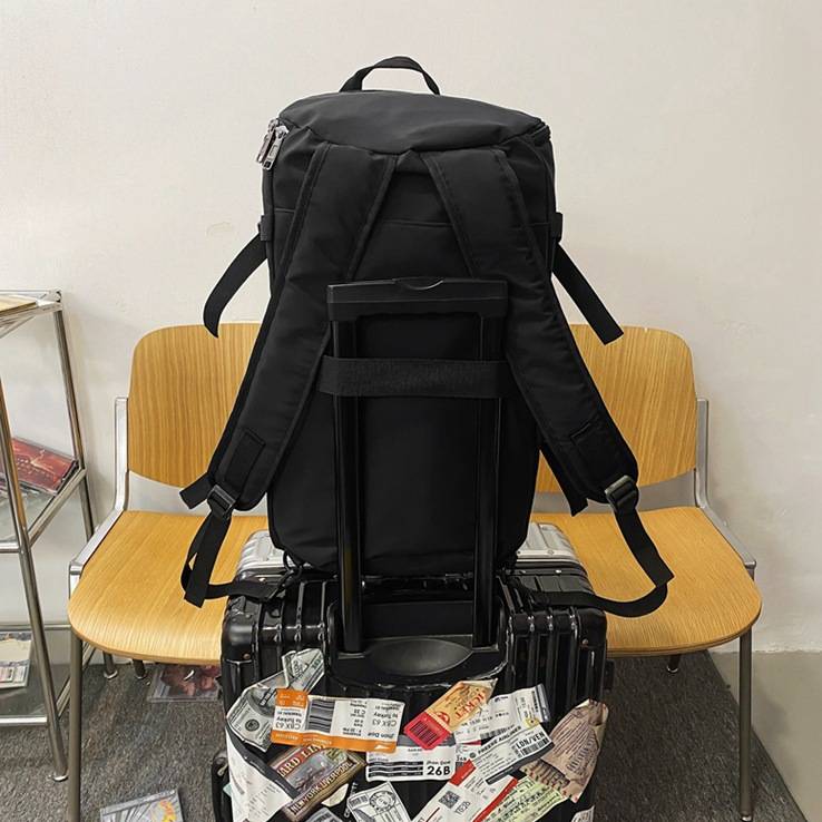 容量たっぷりの大容量設計で、衣類やPC、タオルやシューズなども楽々収納。サイドジップ・フロントポケット・バックベルト付きで、機能性も抜群。さらにスーツケースに取り付けられるベルトも装備されており、旅行時にも便利な設計です。