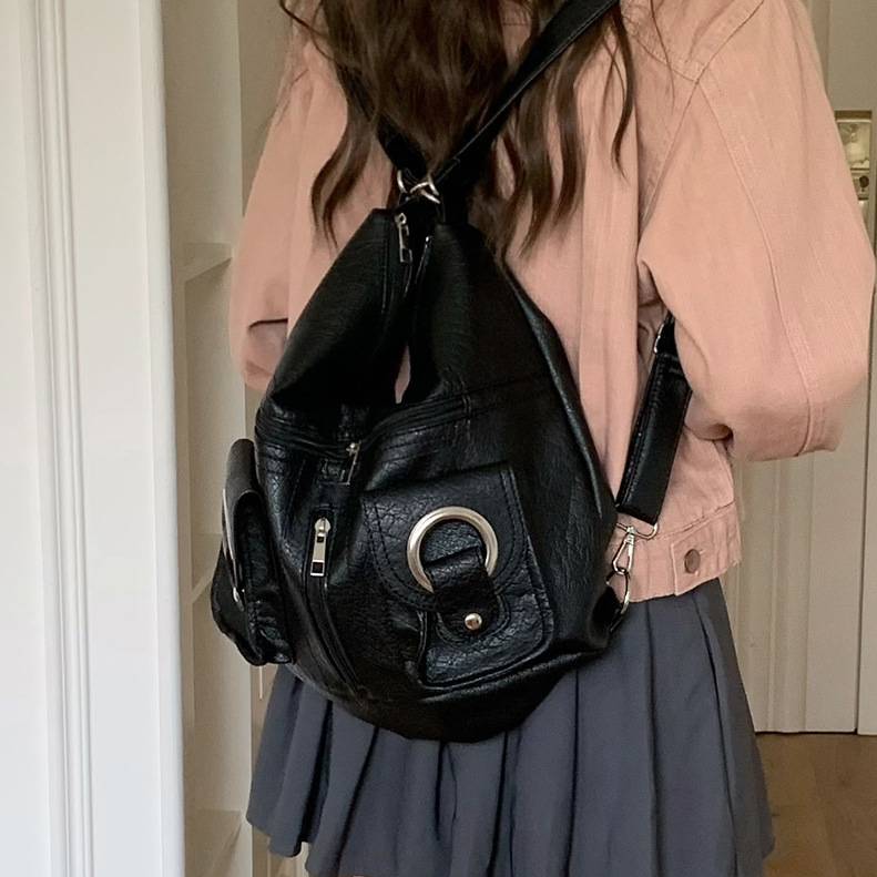 商品名:リングベルトデザイン リュック風ショルダーバッグ 大容量カジュアルバッグ