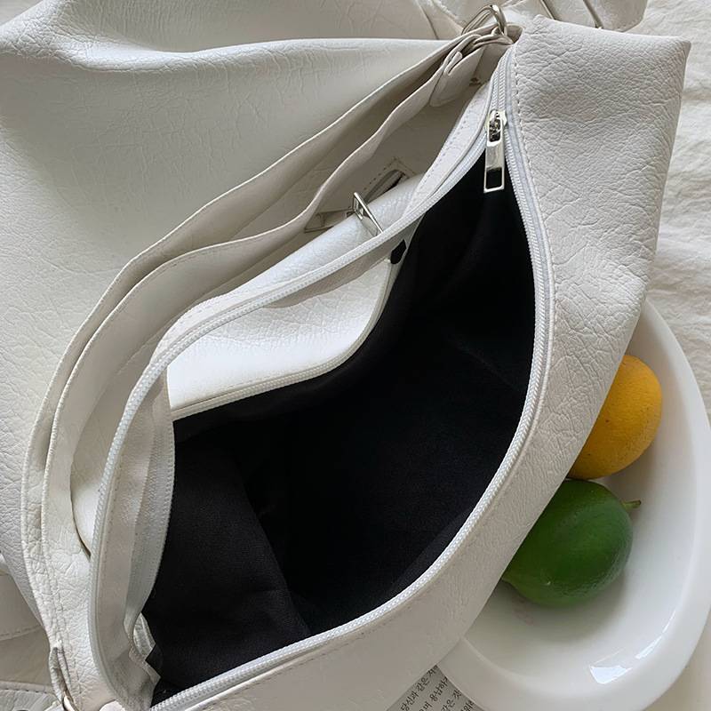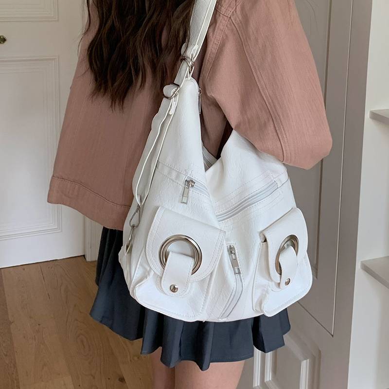 バッグの形はくたっと感のあるソフトなフォルムで、A4サイズもすっぽり収納できる大容量。通勤・通学・お出かけ・旅行など、さまざまなシーンで活躍します。荷物が多い日も、しっかり収納できる安心の収納力が魅力です。トレンドのY2Kや韓国ファッションにぴったりなデザインで、スタイルのアクセントにもなります。