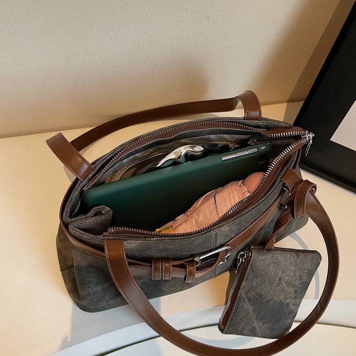 高級感漂うベルトデザインが特徴のレディースショルダーバッグ。しっかりとしたキャンバス素材とブラウンのレザーハンドルが絶妙にマッチし、大人の女性らしい品格を演出してくれます。普段使いから通勤・通学・デートまで幅広いシーンで活躍。取り外し可能なポーチ付きで収納力もバッチリです。