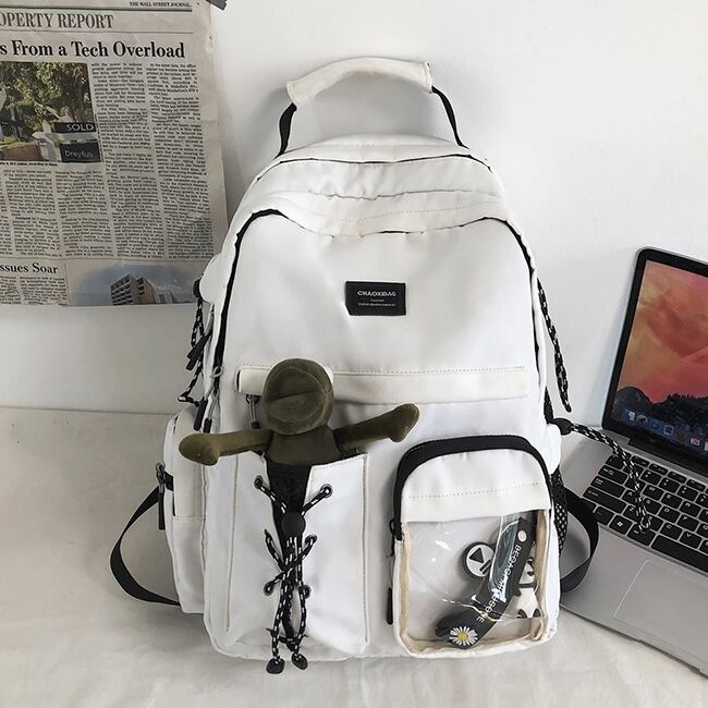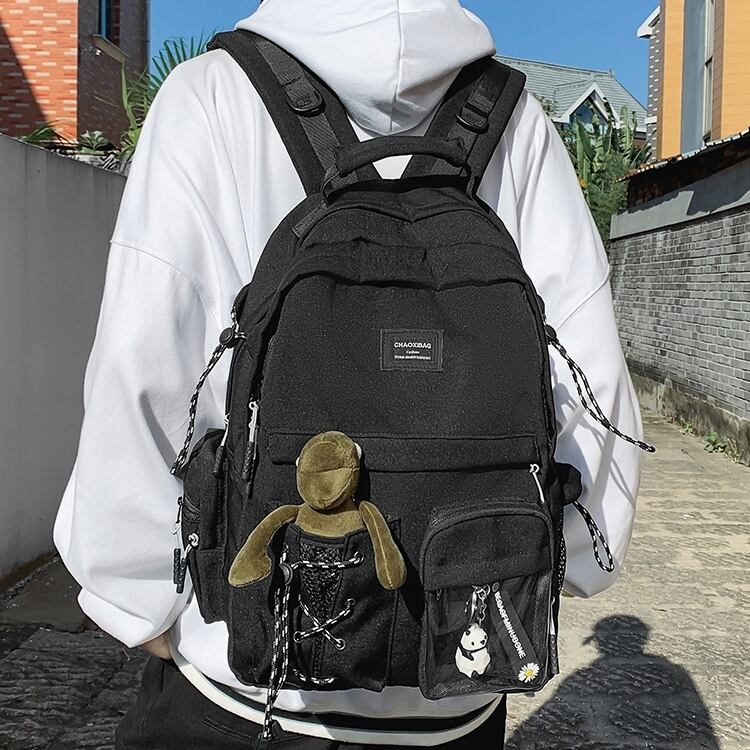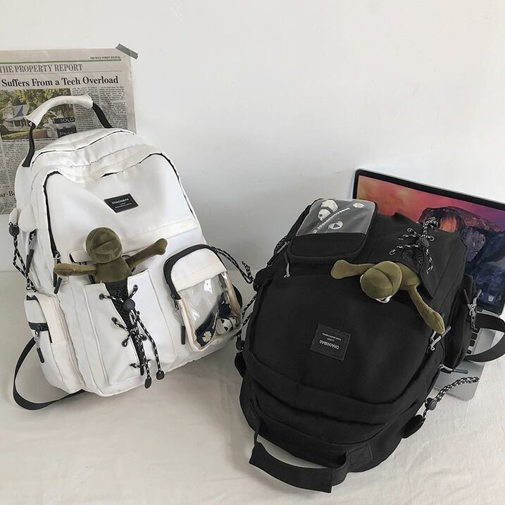 バックパック レディース リュック 春夏 秋冬 春 夏 秋 冬 黒 バッグ 大容量 リュックサック かばん ロゴ 大きめ 学校リュック 部活 合宿 旅行 通学 学校バッグ 高校生 中学生 男の子 女の子 A4 B4 シンプル バッグパック バック ロゴ ブラック アイボリー バッグパック 学校 カレッジコーデ カジュアル デイリー お出かけ K-B0036