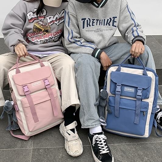 バックパック レディース リュック 春夏 秋冬 春 夏 秋 冬 黒 バッグ リュックサック かばん スクエア ボックス バイカラー スクエア型バッグ 縦長 部活 合宿 旅行 通学 学校バッグ 高校生 中学生 男の子 女の子 A4 B4 シンプル バッグパック バック ロゴ ブラック ピンク ライトブルー ブルー カレッジコーデ カジュアル デイリー お出かけ K-B0020